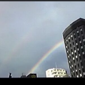 🌈ビルの谷間に虹がかかりました。