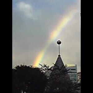 虹を見上げていました😉塔の先端にボールがあるのは、